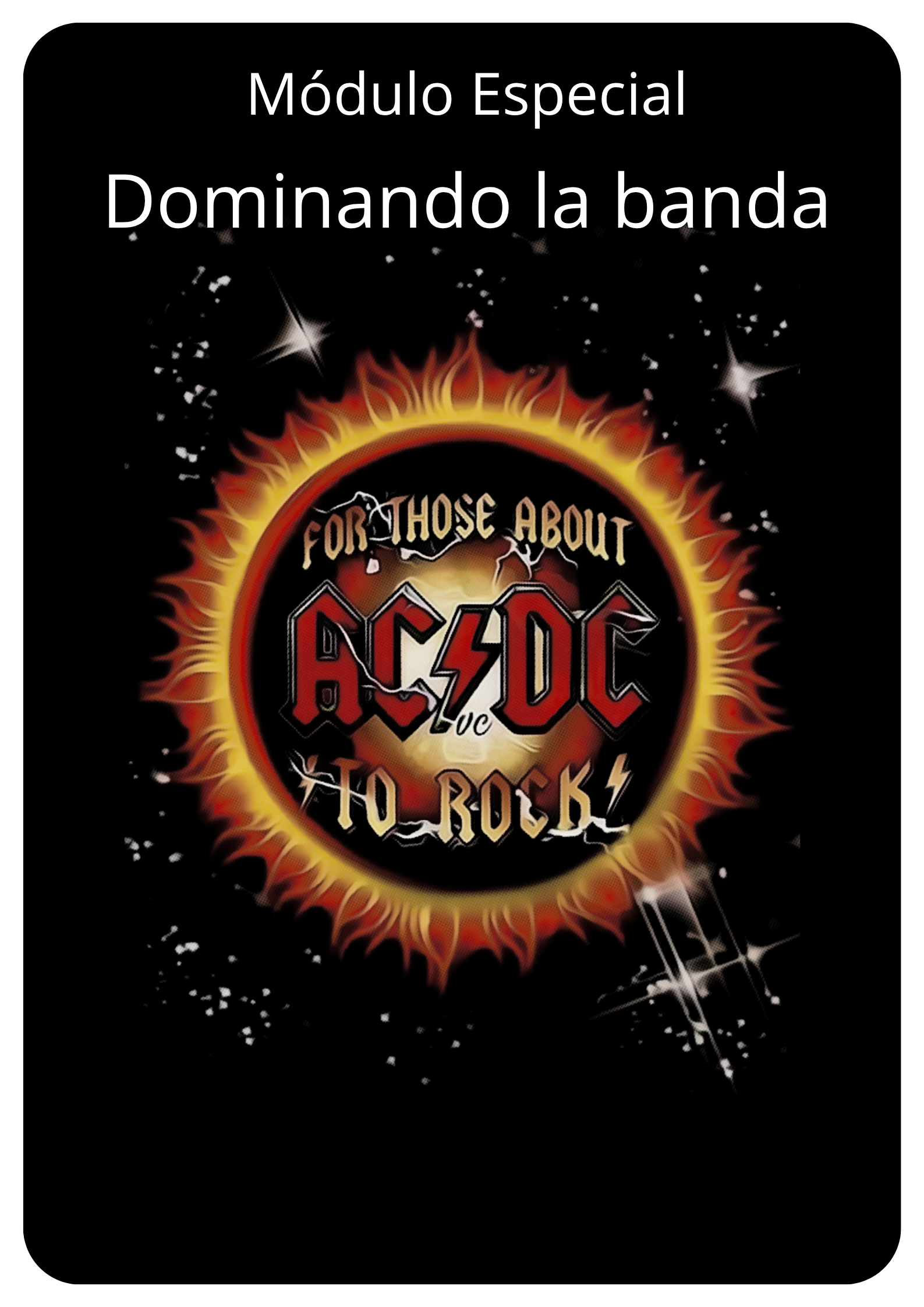 Módulo especial con fundamentos de solos, bends, vibratos y licks clásicos del rock y del blues.